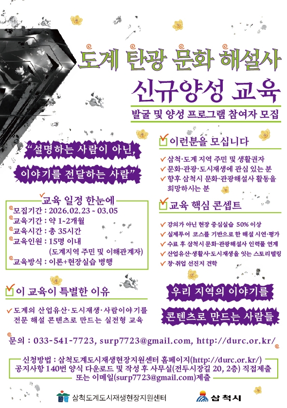 도계 탄광 문화 해설사 신규양성 교육 참여자 모집